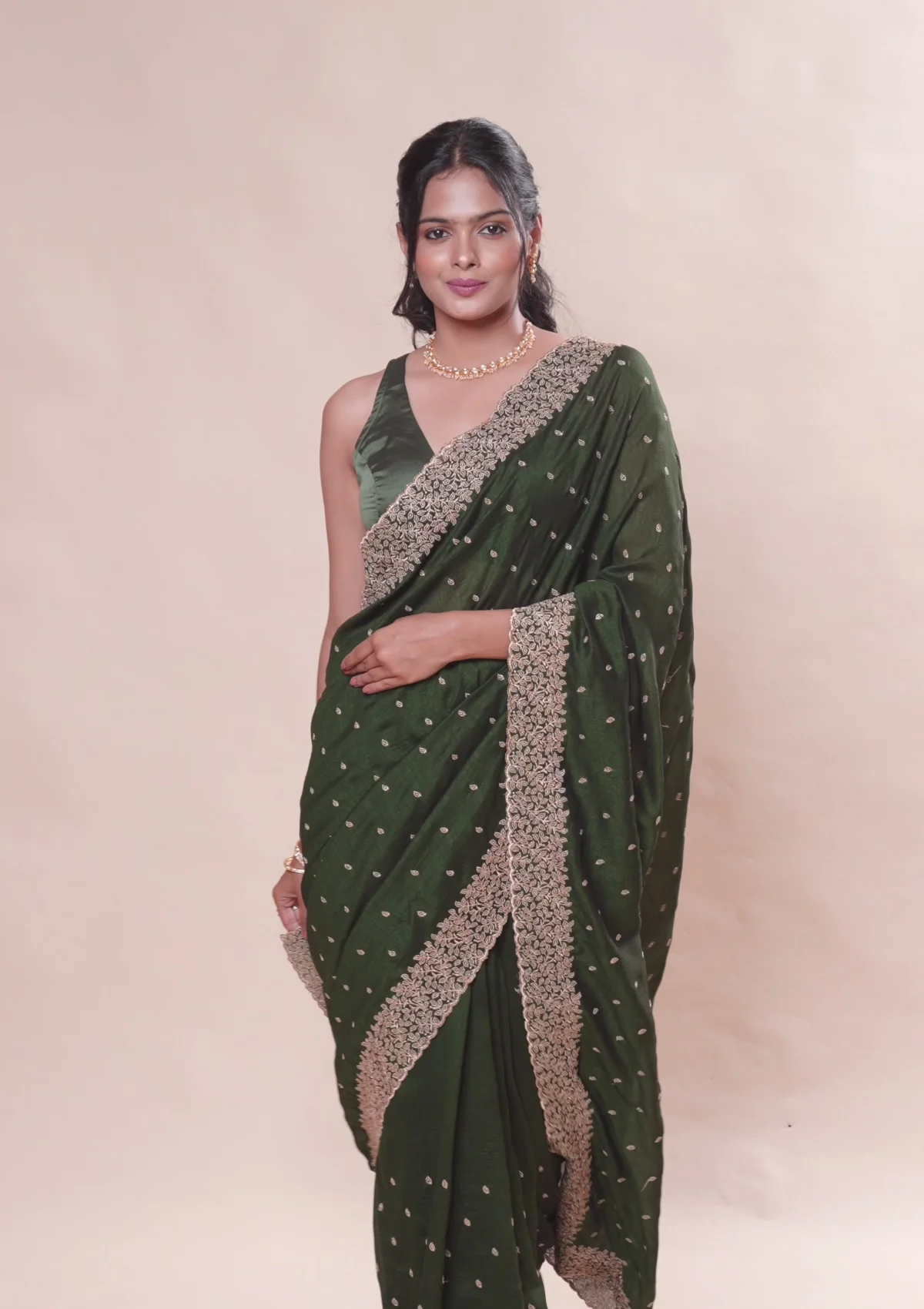 Bottle Green Zariwork Soft Silk Saree