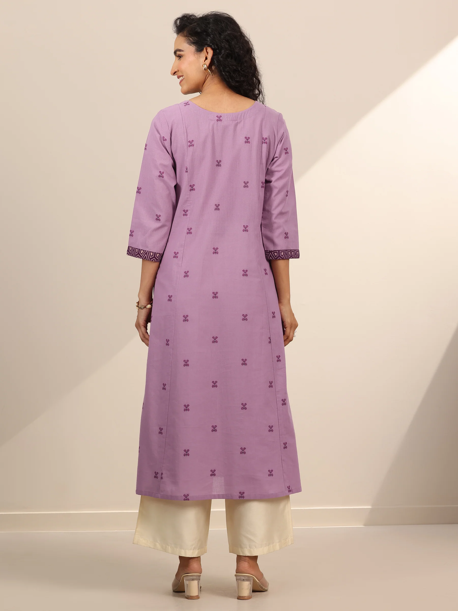Lavender Woven Cotton Blend A-Line Kurta