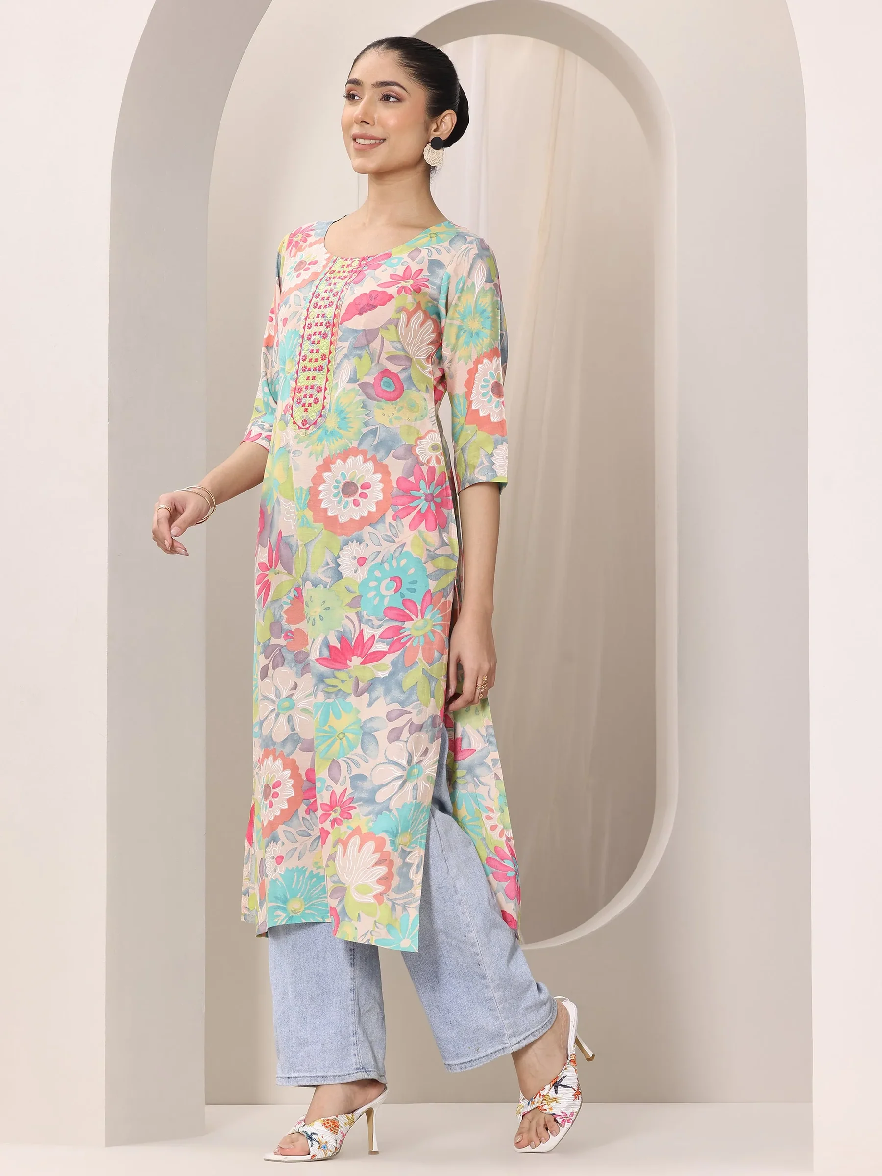 Multi Printed Silk Blend Straight Kurta