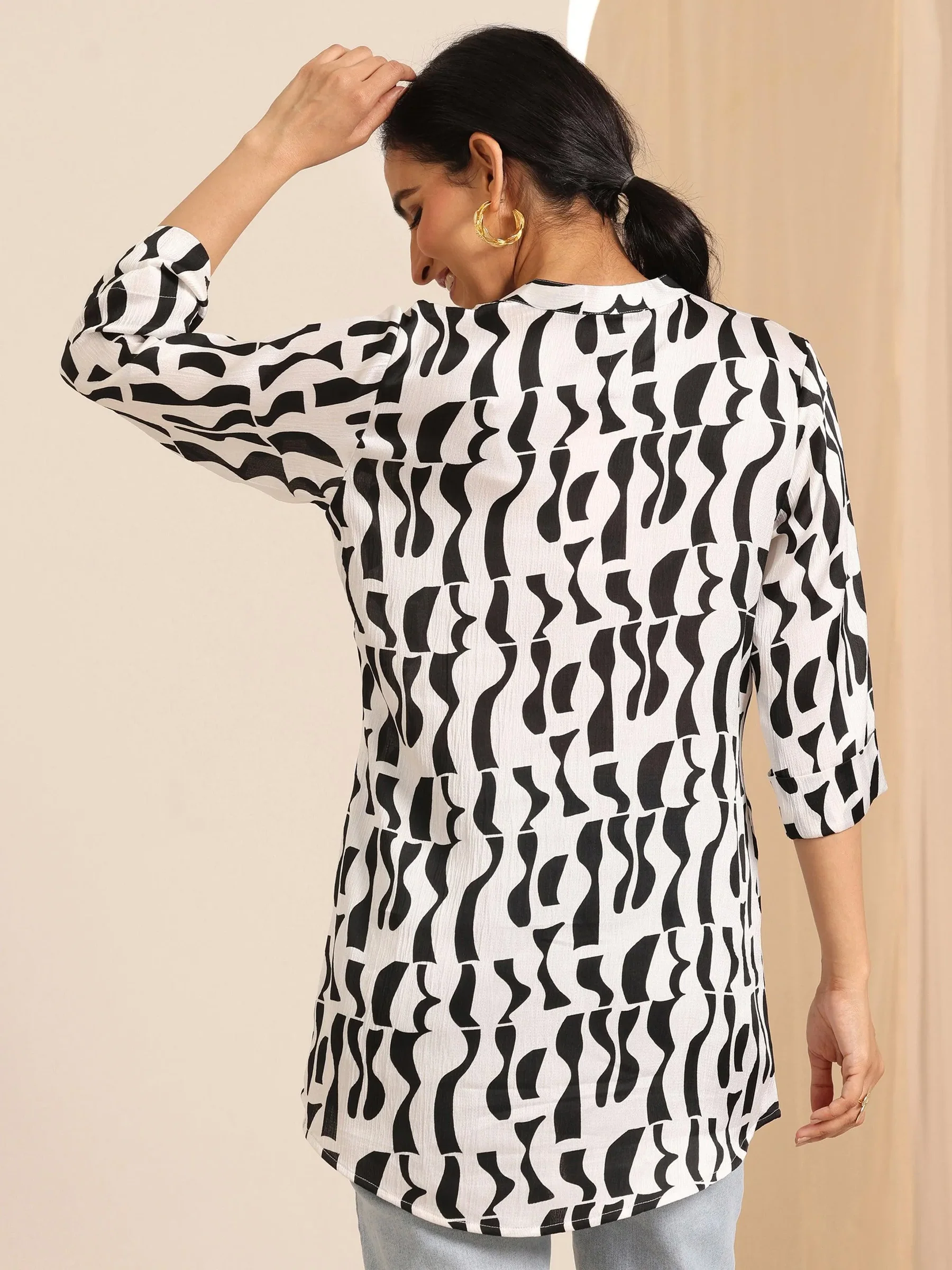 Multicoloured Printed Viscose Rayon A-line Short Kurti